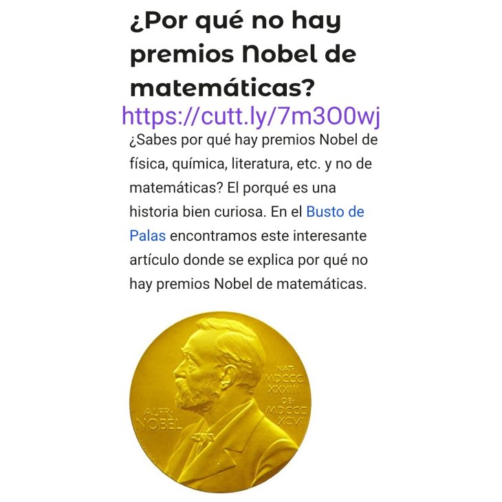 25/07/2021 by profe.mates.jac ¿Por qué no hay premio Nobel de Matemáticas? Sin categoría Deja un comentario Enlace: https://cutt.ly/7m3O0wj Compártelo: Compartir en X (Se abre en una ventana nueva) X Compartir en Facebook (Se abre en una ventana nueva) Facebook Me gusta Cargando...