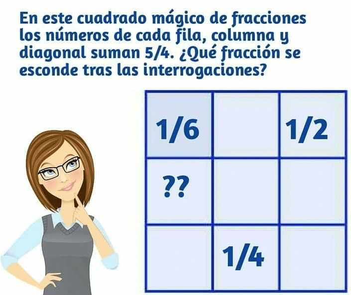 01/08/2021 by profe.mates.jac Resuelve el cuadrado mágico de fracciones Imagen 2ºESO, Problemillas y Acertijos Deja un comentario Compártelo: Compartir en X (Se abre en una ventana nueva) X Compartir en Facebook (Se abre en una ventana nueva) Facebook Me gusta Cargando...
