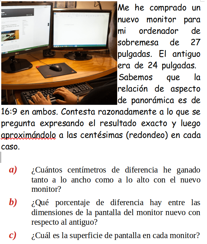 27/07/2022 by profe.mates.jac Dos monitores Imagen 3ºESO, 4ºESO, Problemillas y Acertijos Deja un comentario Compártelo: Compartir en X (Se abre en una ventana nueva) X Compartir en Facebook (Se abre en una ventana nueva) Facebook Me gusta Cargando...