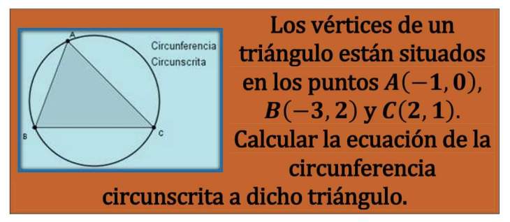 Calcula la ecuación de la circunferencia circunscrita al triángulo dado
