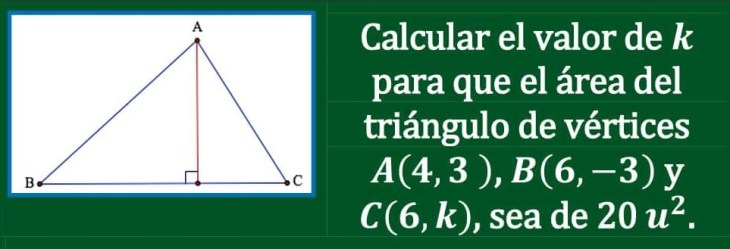 Calcula k para que el triángulo siguiente tenga dicha área