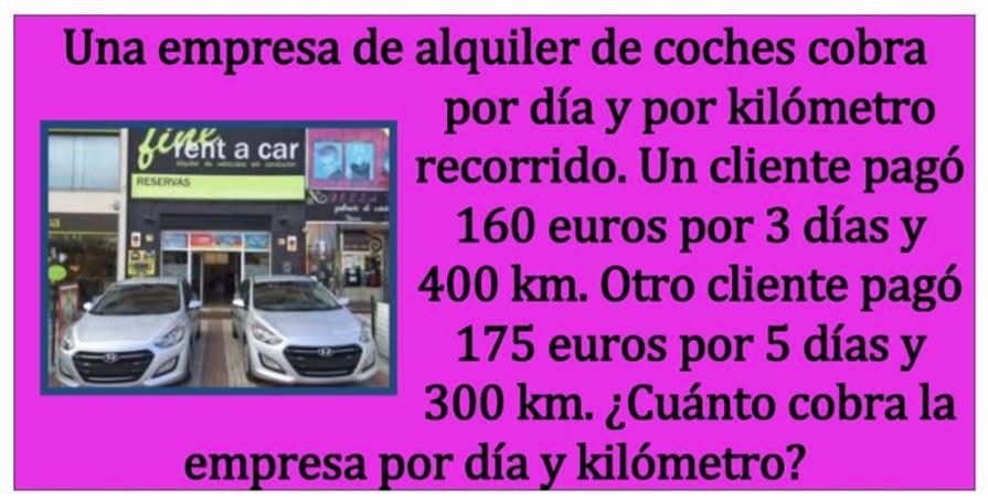 26/01/2025 by profe.mates.jac La empresa de coches de alquiler Imagen 3ºESO, 3ºESO Académicas, Problemillas y Acertijos Álgebra Deja un comentario Compártelo: Compartir en X (Se abre en una ventana nueva) X Compartir en Facebook (Se abre en una ventana nueva) Facebook Me gusta Cargando...
