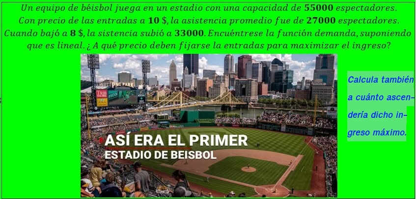 09/02/2025 by profe.mates.jac Calcular el precio de la entrada para maximizar los ingresos (halla también dicho ingreso máximo) Imagen 1ºBachillerato Ciencias, 2ºBachillerato CC.SS, Problemillas y Acertijos Análisis Deja un comentario Compártelo: Compartir en X (Se abre en una ventana nueva) X Compartir en Facebook (Se abre en una ventana nueva) Facebook Me gusta Cargando...