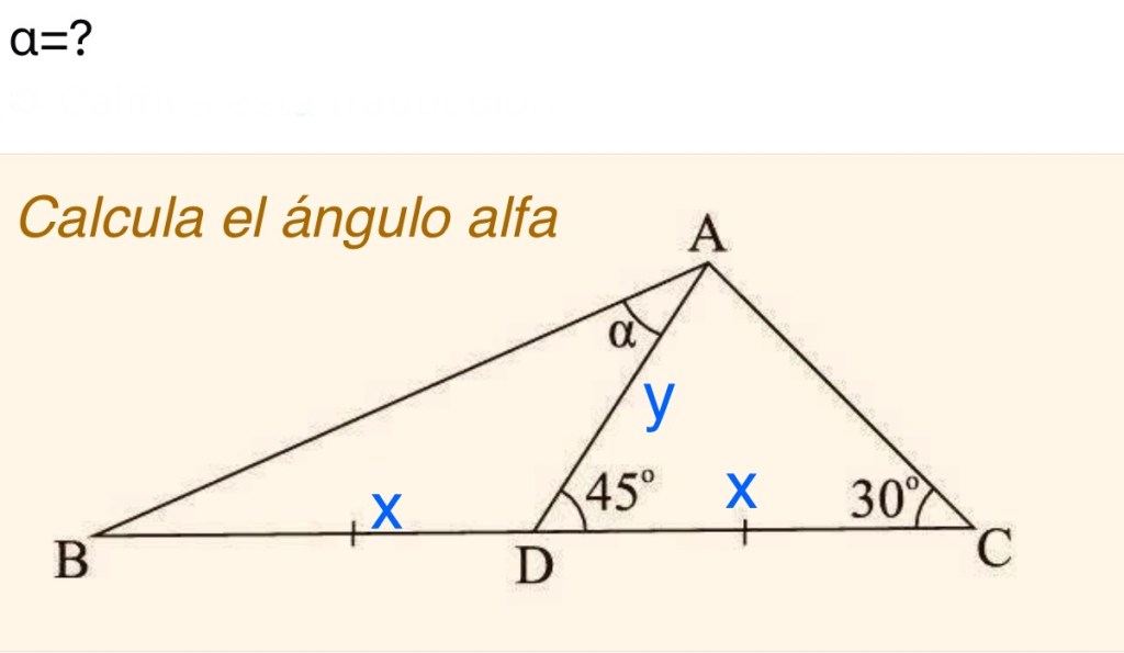 20/03/2025 by profe.mates.jac Calcula el ángulo alfa de este triángulo Imagen 1ºBachillerato Ciencias, Problemillas y Acertijos Trigonometría Deja un comentario Compártelo: Compartir en X (Se abre en una ventana nueva) X Compartir en Facebook (Se abre en una ventana nueva) Facebook Me gusta Cargando...