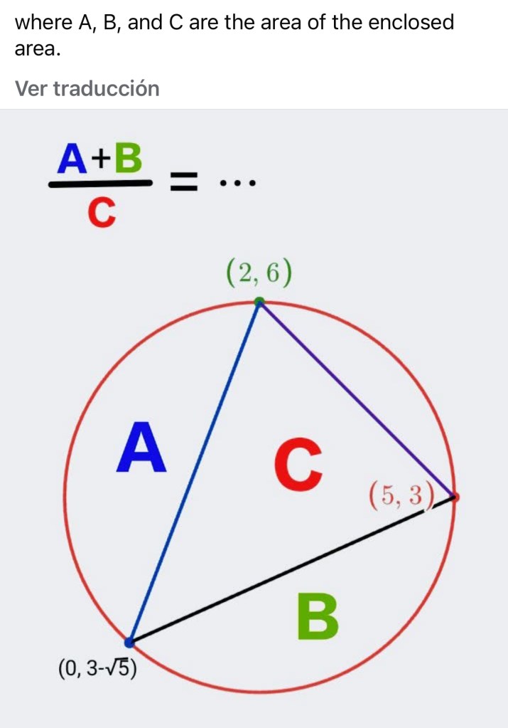 17/03/202515/03/2025 by profe.mates.jac Resuelve el triángulo azul y halla su área Imagen 1ºBachillerato Ciencias, Problemillas y Acertijos Trigonometría Deja un comentario Compártelo: Compartir en X (Se abre en una ventana nueva) X Compartir en Facebook (Se abre en una ventana nueva) Facebook Me gusta Cargando...
