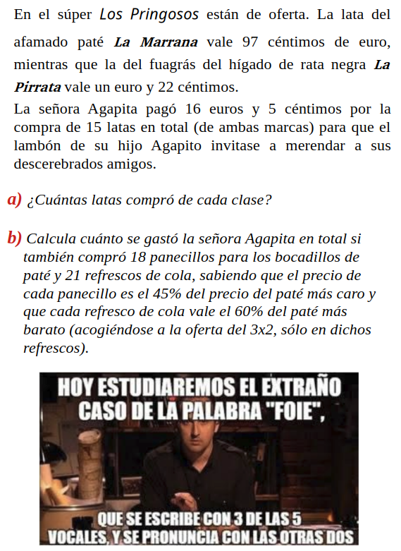 04/03/202504/03/2025 by profe.mates.jac Los patés Imagen 3ºESO, 3ºESO Académicas, Problemillas y Acertijos Álgebra Deja un comentario Compártelo: Compartir en X (Se abre en una ventana nueva) X Compartir en Facebook (Se abre en una ventana nueva) Facebook Me gusta Cargando...