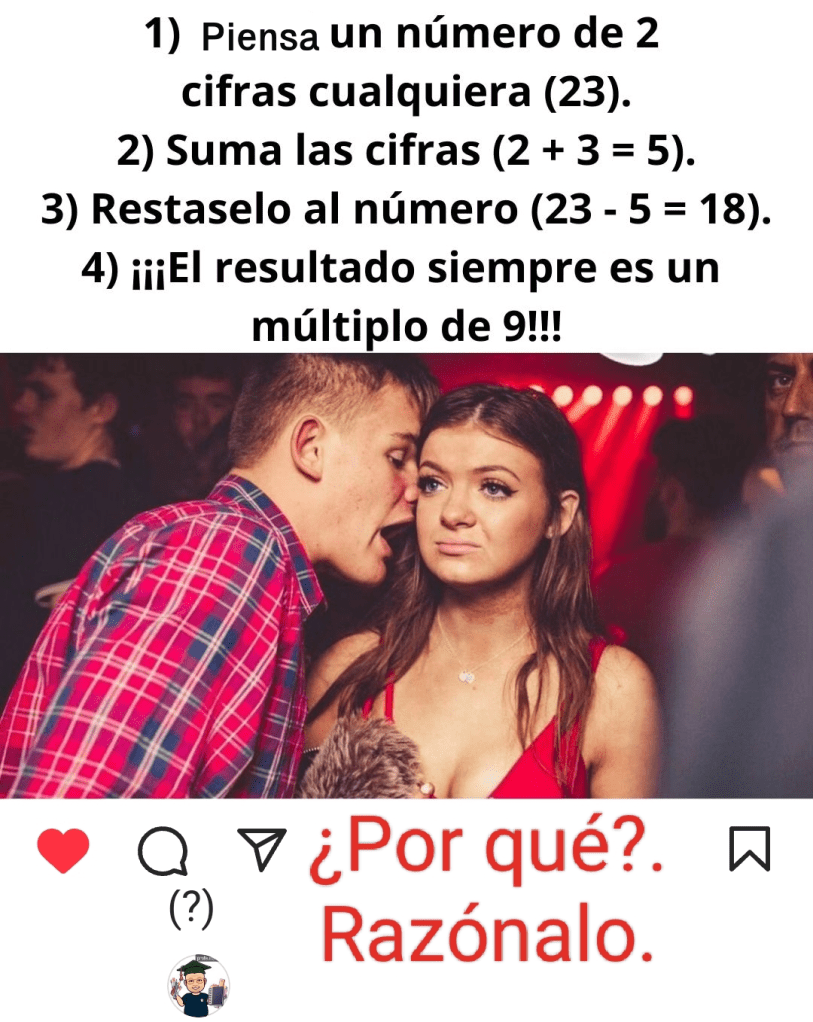 21/07/202520/07/2025 by profe.mates.jac Siempre da múltiplo de 9 Imagen 3ºESO, 3ºESO Académicas, 3ºESO-light, Problemillas y Acertijos Aritmética Deja un comentario Compártelo: Compartir en X (Se abre en una ventana nueva) X Compartir en Facebook (Se abre en una ventana nueva) Facebook Me gusta Cargando...