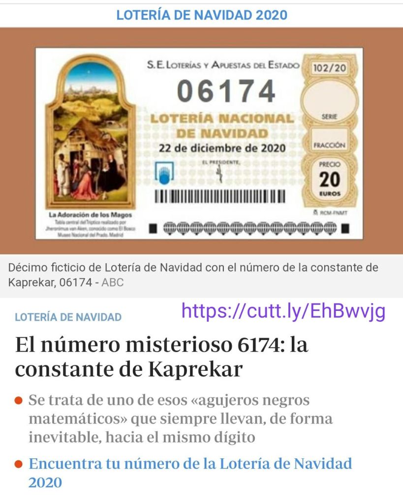 A la hora de elegir un número de la Lotería de Navidad, hay muchos que afirman no ser «supersticiosos» y dejar totalmente al azar, como el propio sorteo, la elección de números. «El que sea», es una de las frases más escuchadas estos días en las administraciones de Lotería, junto con el tradicional «que acabe en este número…». Porque los españoles también confiamos mucho en determinadas terminaciones, que juzgamos como potenciales candidatas para el Premio Gordo. Hay quien también elige sus dígitos «de la suerte» en base a fechas especiales o quien lleva apostando por exactamente el mismo número desde hace años. Pero puede que este año a usted le apetezca comprar una combinación de la Lotería de Navidad basada en algo más particular, que llega desde la raíz misma de la propia ciencia de los números: las Matemáticas. ¿Qué le parece apostar todo al «misterioso» número 6174, que esconde la constante de Kaprekar?