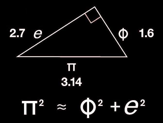 Los tres números están relacionados de forma cuasi-pitagórica, es decir:● Φ² + e² ≈ π²